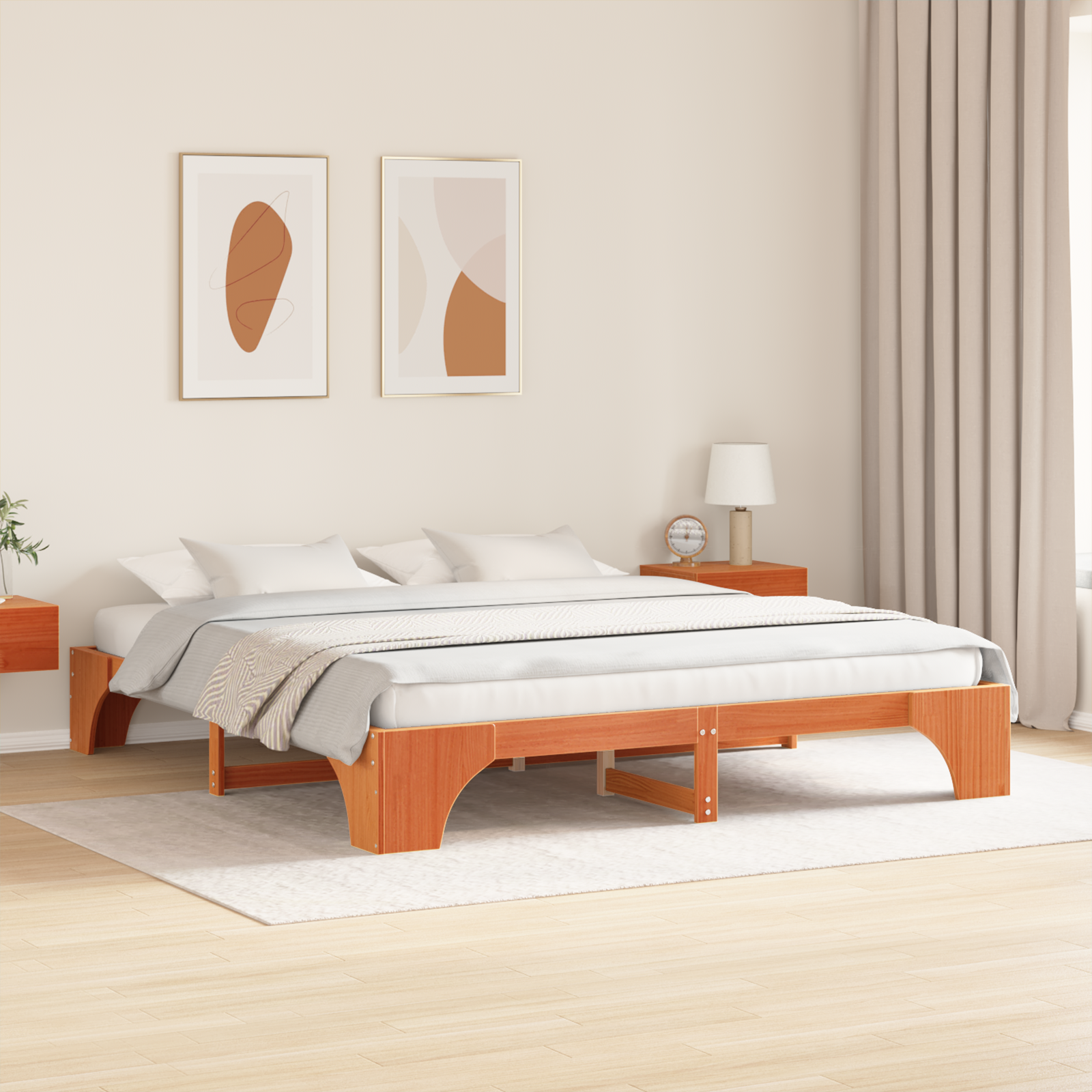 Bed Frame Wax Brown Solid Wood King Oak Bed Frame Rectangular